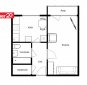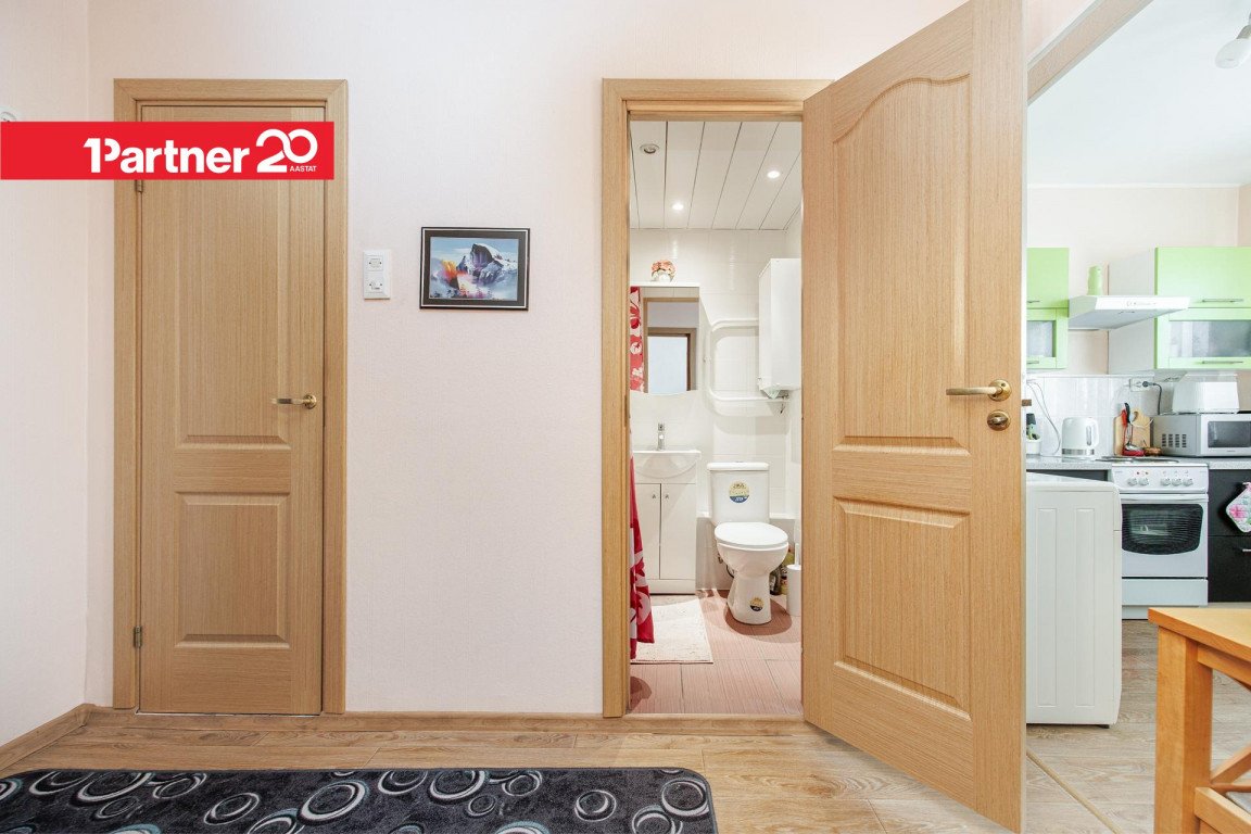 Toa põrandat katab naturaalne kilpparkett, köögis ja esikus PVC-kate.