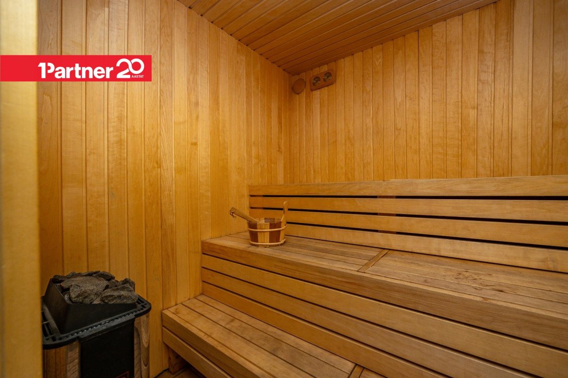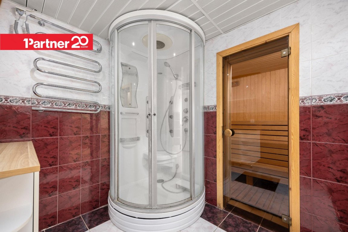 Samal korrusel asuvad saun koos duširuumi ja eraldi majapidamisruumiga – kõik mugavused käepärast.