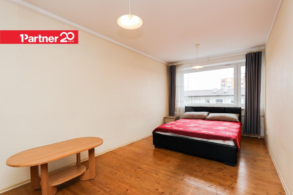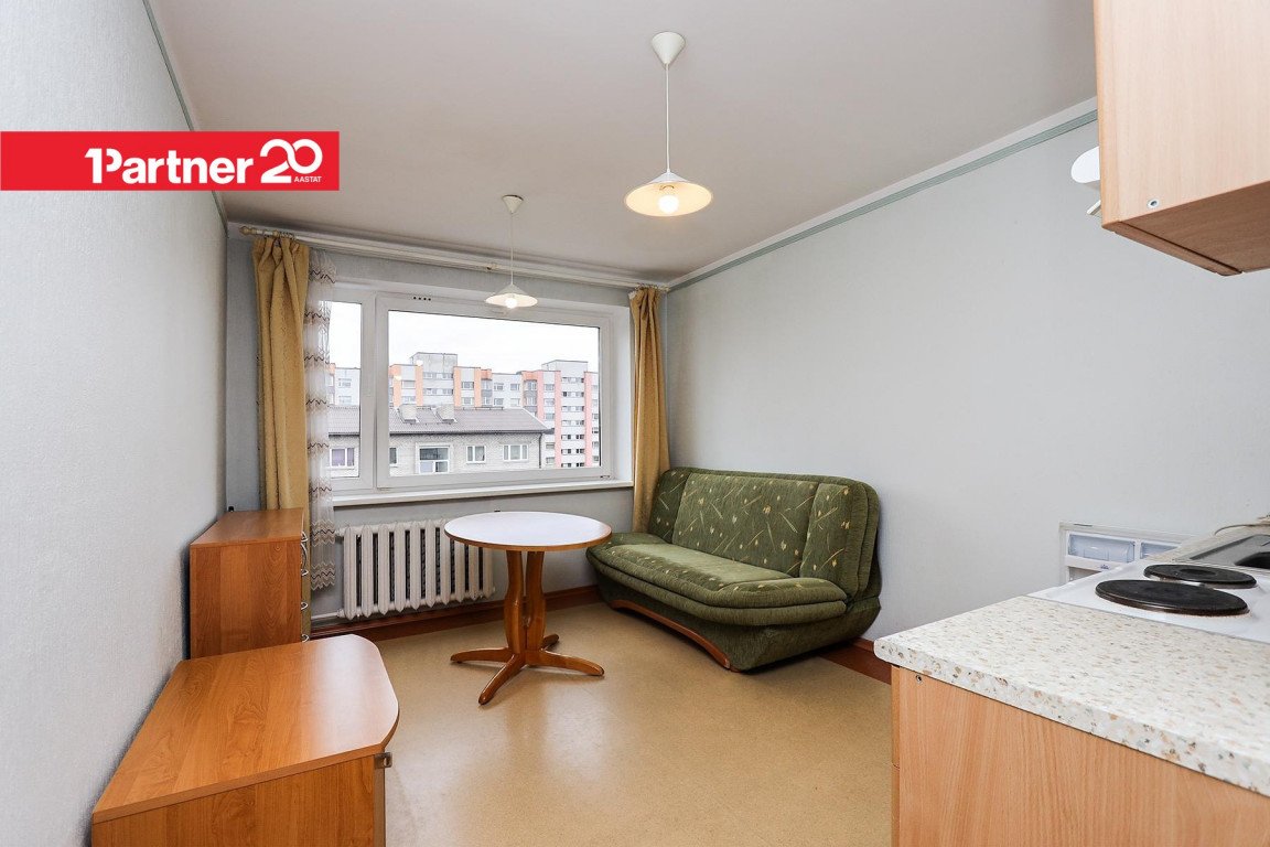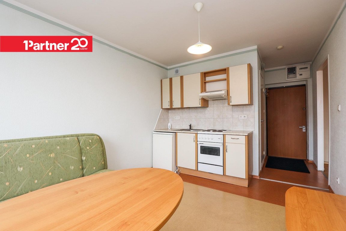 Korteri koosseisu kuulub avatud köök koos söögitoaga ning eraldi elutuba/magamistuba. Köögis on köögimööbel, söögilaud ja toolid ning lahtikäiv diivan, elutoas on peegelliugustega garderoob, lahtikäiv voodi ja kummut. Vannitoas on pesumasin. Omanik võib soovi korral lisada juurde televiisori ning vahetada olemasoleva diivanvoodi uuema vastu.