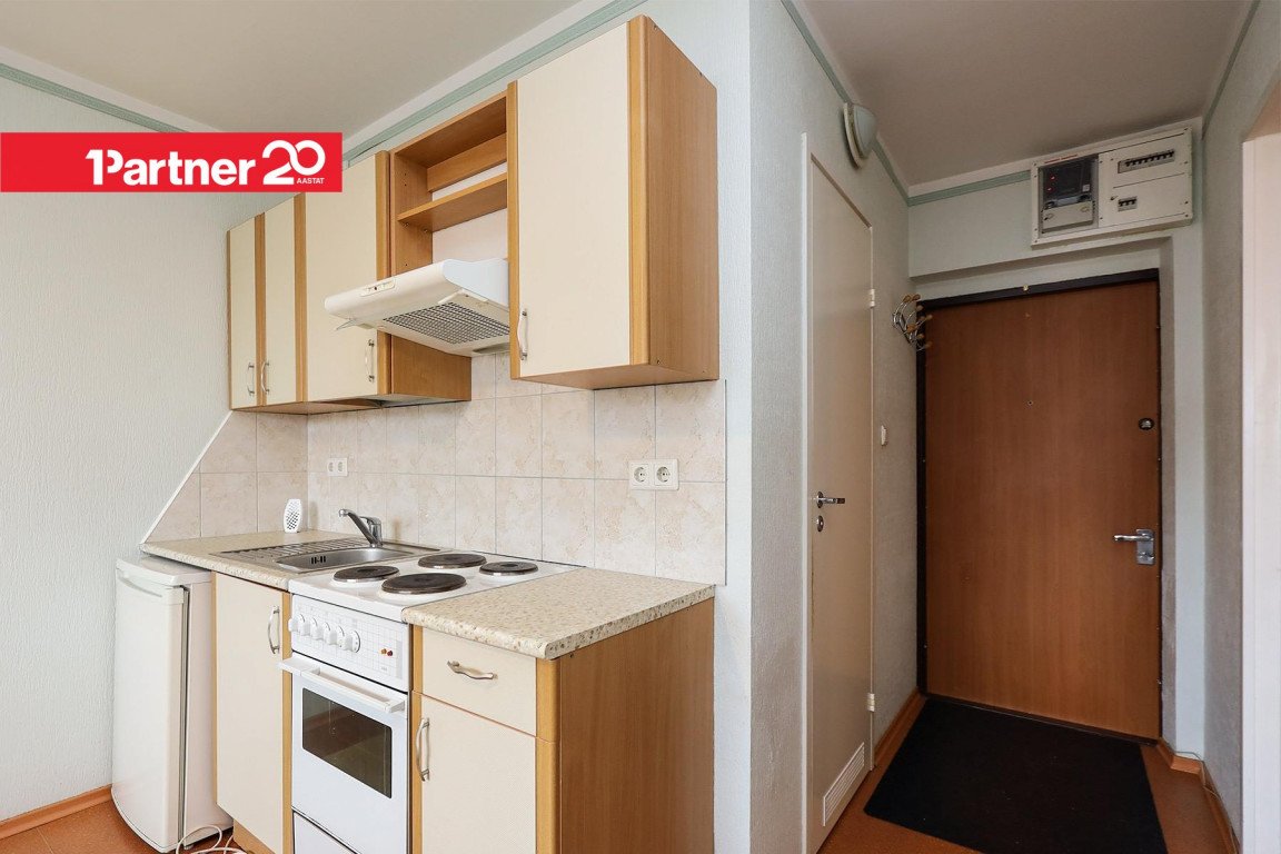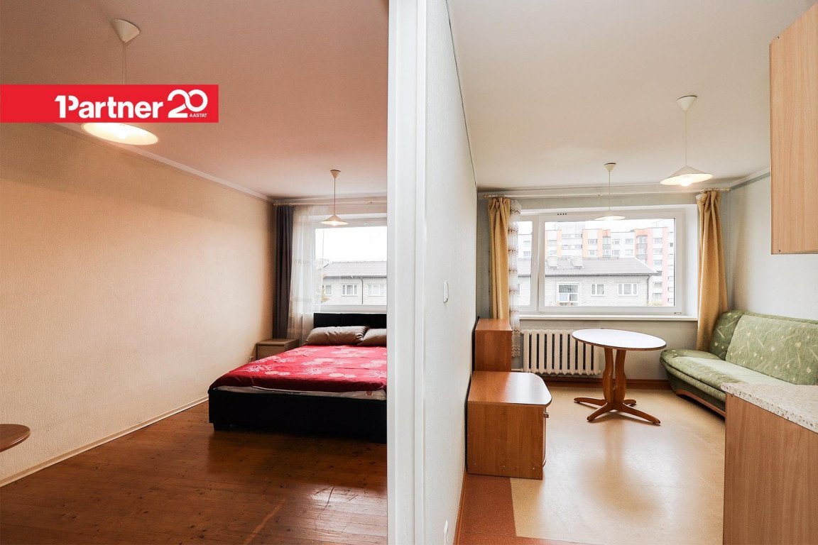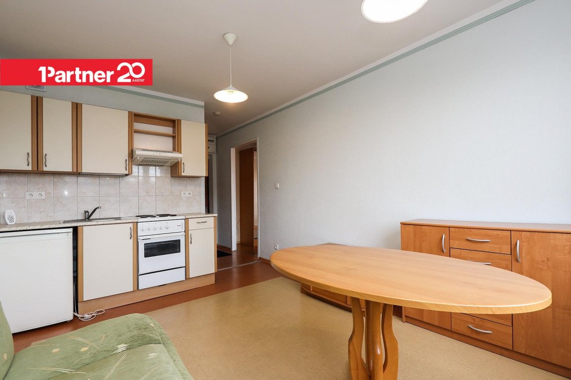 Korteri koosseisu kuulub avatud köök koos söögitoaga ning eraldi elutuba/magamistuba. Köögis on köögimööbel, söögilaud ja toolid ning lahtikäiv diivan, elutoas on peegelliugustega garderoob, lahtikäiv voodi ja kummut. Vannitoas on pesumasin. Omanik võib soovi korral lisada juurde televiisori ning vahetada olemasoleva diivanvoodi uuema vastu.