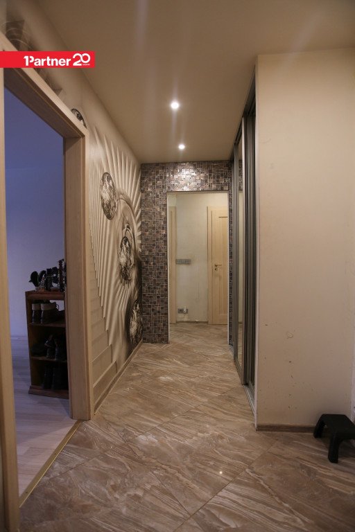 Установлены пластиковые окна, полы выровнены бетонной стяжкой и покрыты ламинатом. Стены выровнены и покрашены, в комнатах установлены натяжные потолки, заменены радиаторы центрального отопления. Ванная комната отделана плиткой, заменены электропроводка, трубы водоснабжения и канализации.