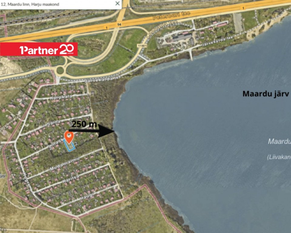 Предлагается к продаже ухоженный земельный участок площадью 1829 м², расположенный всего в 250 метрах от озера Маарду — идеальное сочетание природы, тишины и удобной инфраструктуры.